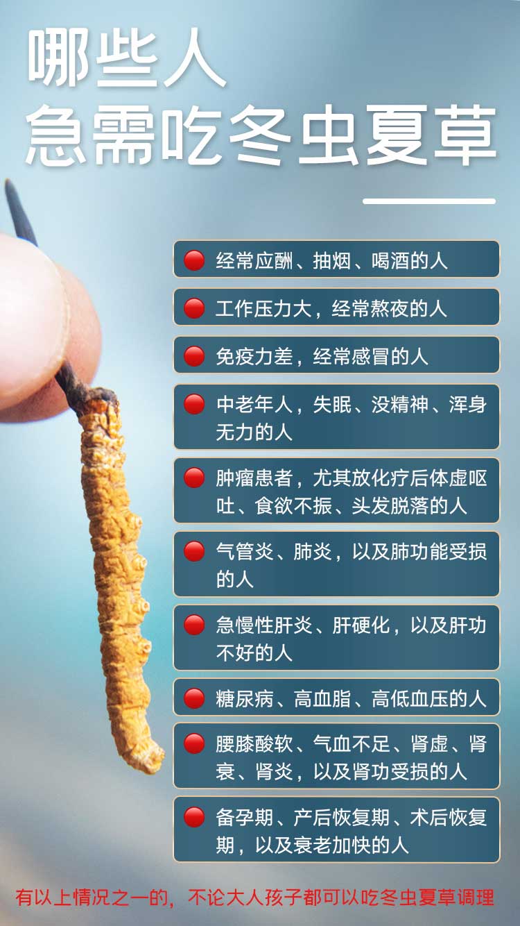 据很多人反映:连续不间断吃虫草两年,身体阴阳平衡了,气血舒畅了,全身上下很多慢性病都得到了极大改善!